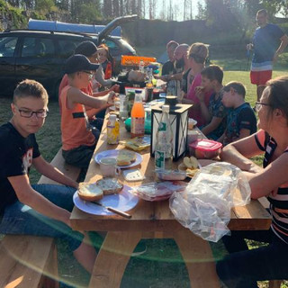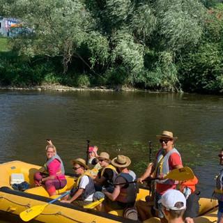 Unser diesjähriges Jugendcamp auf Burg Hanstein stand ganz unter dem Zeichen der Sonne. Am Freitagabend trafen sich die jungen Familien zum Zeltaufbau auf der Burg. Natürlich haben wir auch einen Bogenschießstand zum Üben eingerichtet und eine sichere Feuerstelle für die Zubereitung der Speisen im Kessel. Nach dem gemeinsamen Frühstück am Samstag packten wir unsere Versorgungstaschen schon sehr früh um uns rechtzeitig an der Bootsanlegestelle in Eschwege einzufinden. Dann beförderte uns ein Transfer nach Treffurt. Dort bekamen wir eine genaue Einweisung zur Beachtung der Regeln und verschiedene Tipps zur Handhabung des Schlauchbootes für verschiedene Wasserstände auf der Werra. Von den zwei Gruppen die wir bildeten wählten wir jeweils einen Steuermann und dann ging es los. Nicht nur die Kinder hatten viel Spaß und gute Gespräche sondern auch die Erwachsenen. Besondere Tiere konnten wir bestaunen und am Ufer und den einen oder anderen Wettstreit ausrichten. Ganz besonders schön war auch der alte Hafen in Wanfried an dem wir eine Rast machten und vieles anschauen konnten. Eine gute Erfahrung war es auf jeden Fall auch wenn die Bedingungen nicht die besten waren. Aber das weckt den Teamgeist. Am Abend wurde gekocht, gespielt und es gab auch noch eine Nachtwanderung. Ein guter Ausklang mit Blick auf das nächste Jahr.